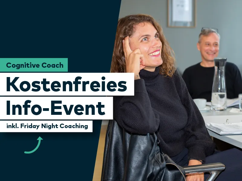 Lerne die Theorie unseres Kognitiven Coaching-Ansatzes kennen und erlebe die Praxis bei einem Live-Coaching. Im Rahmen des Info-Events zur Ausbildung ist die Teilnahme am Friday Night Coaching kostenfrei.
